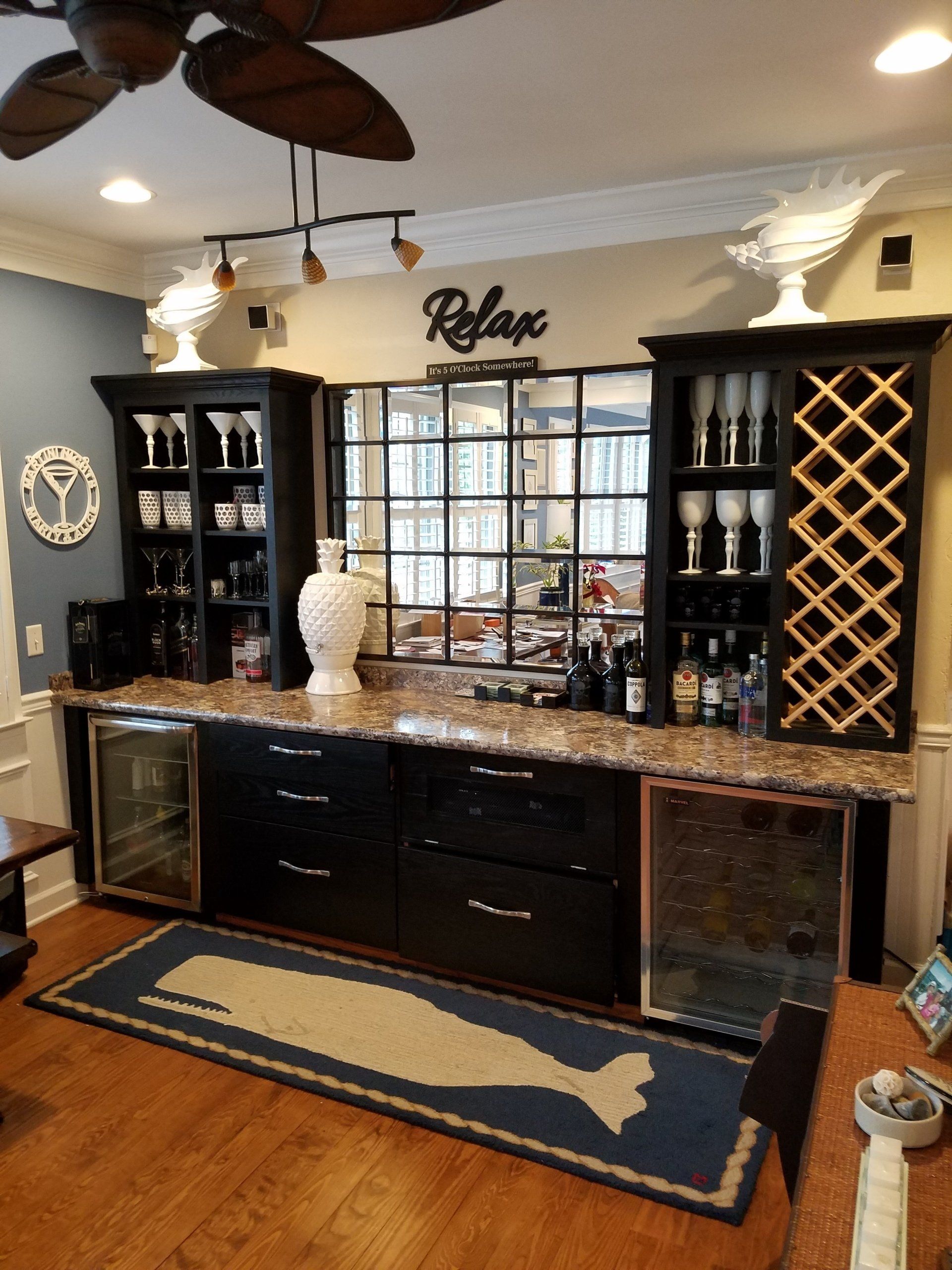 From a small corner bar to a large one by the pool, we can help you create your very own. We can design a space specifically for a wine refrigerator, glasses, ice machine, and beverages.